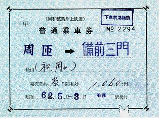初めて片上鉄道に入り、その帰路の切符を購入しようとして、当時の最寄駅だった吉備線備前三門駅も、連絡