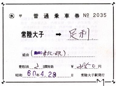 最初は、郡山経由を考えていたのですが、大子から国鉄バス常野線が出ていたのを思い出し、初めて窓口で鉄道線とバス路線との連絡切符を作ってもらいました。