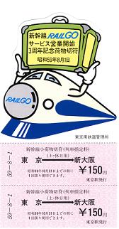後年になって手に入れたモノですが、”新幹線RAIL GOサービス営業開始3周年記念荷物切符”です。